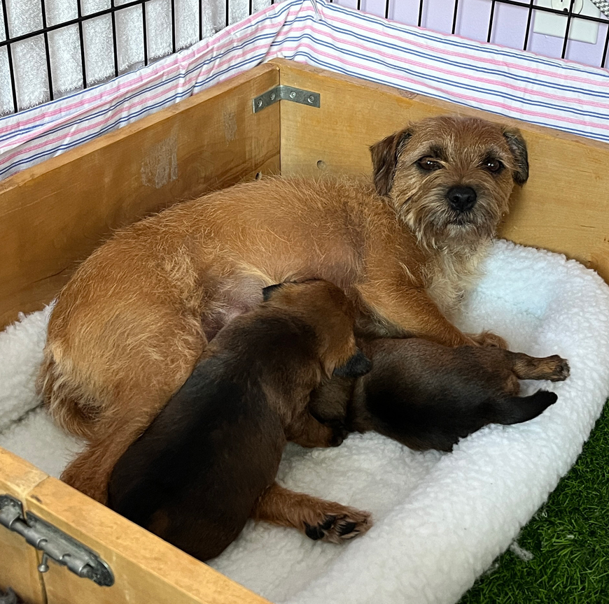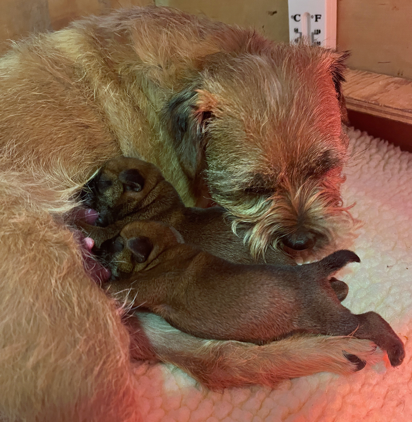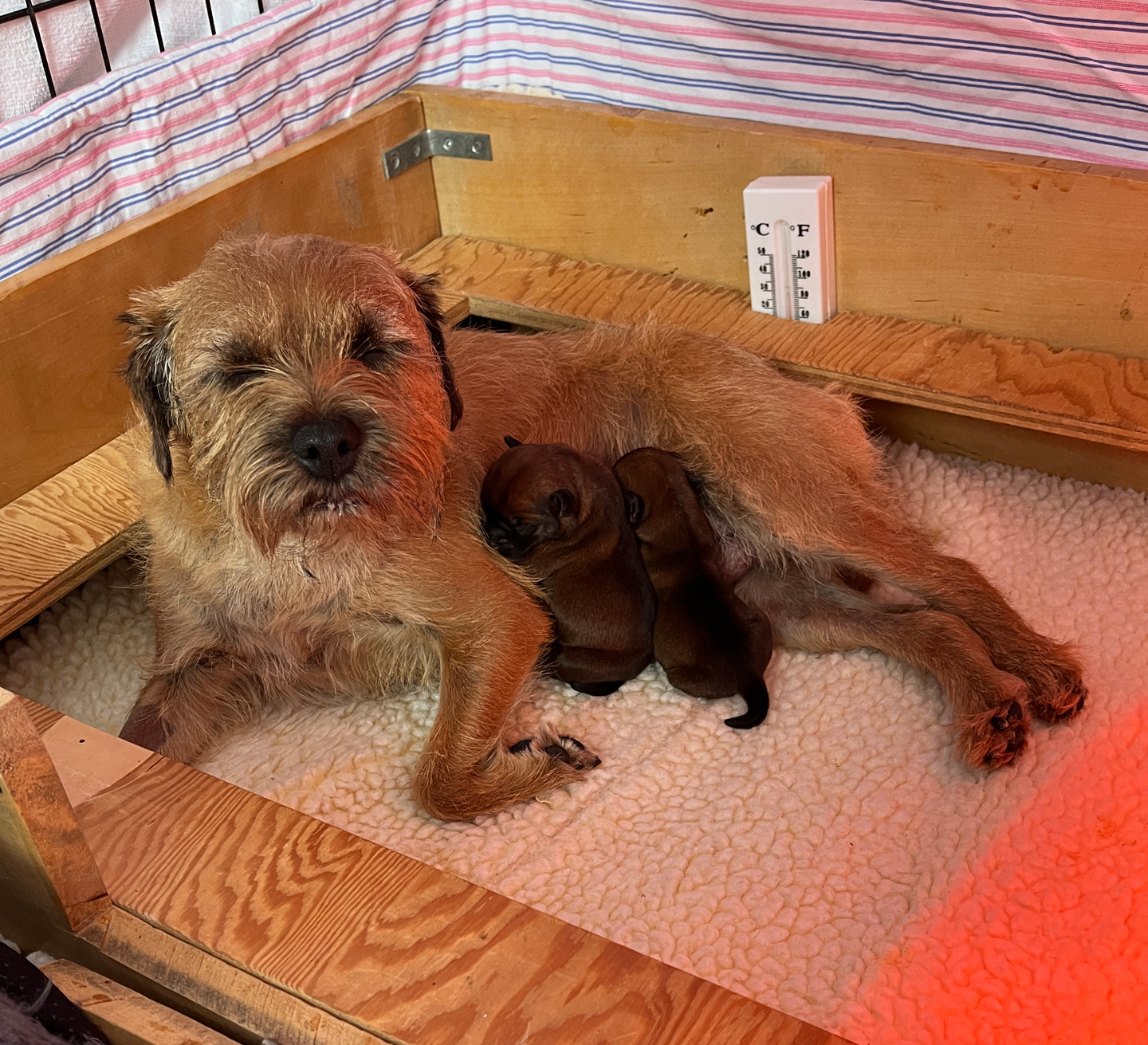 Our neonatal puppy room set up, it has been through a variety of iterations over the 43 years I have been breeding but the box (made by Chris) has been a constant