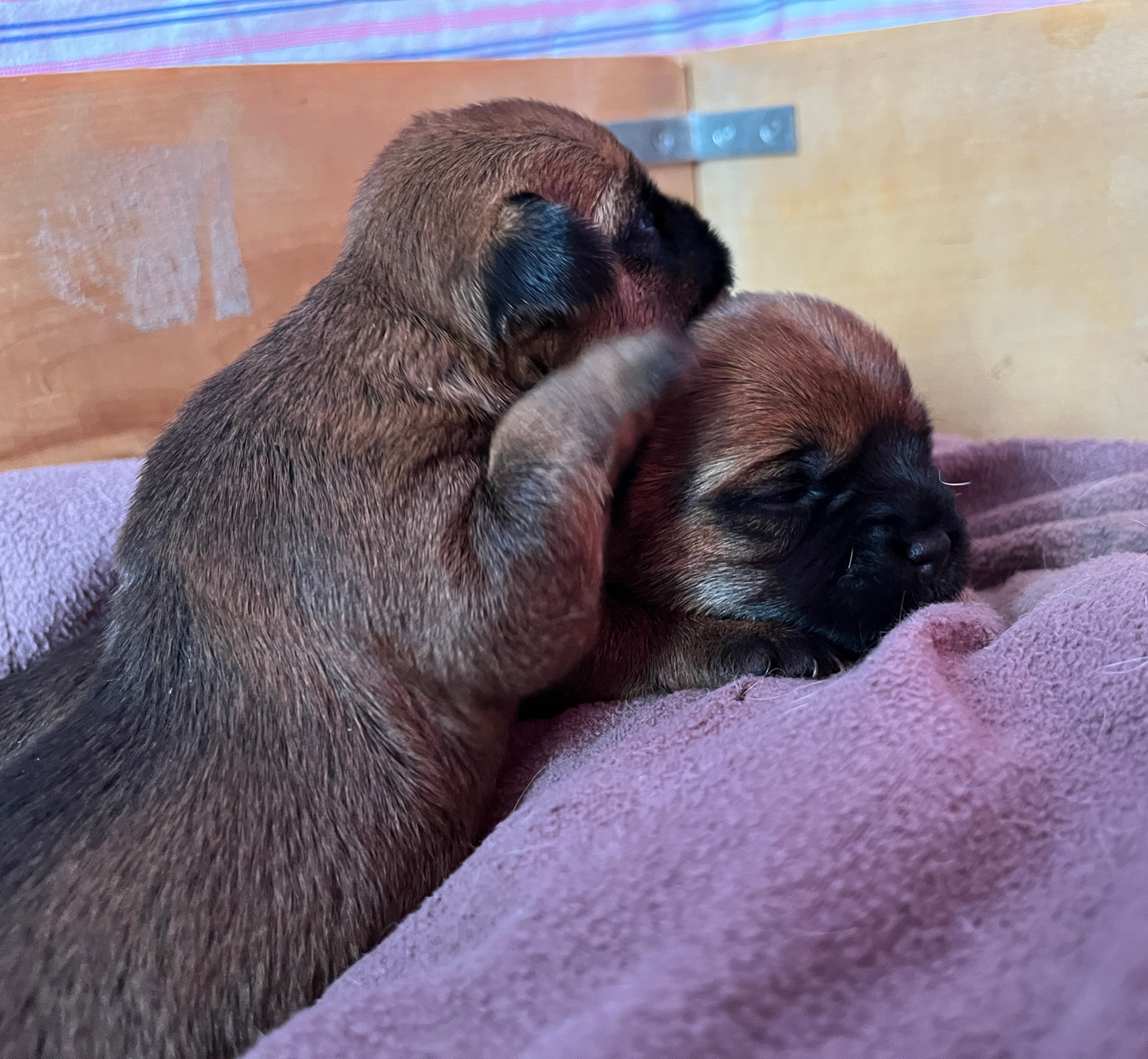Pups eyes opened at 13 days and the cuteness stage is coming on strong.