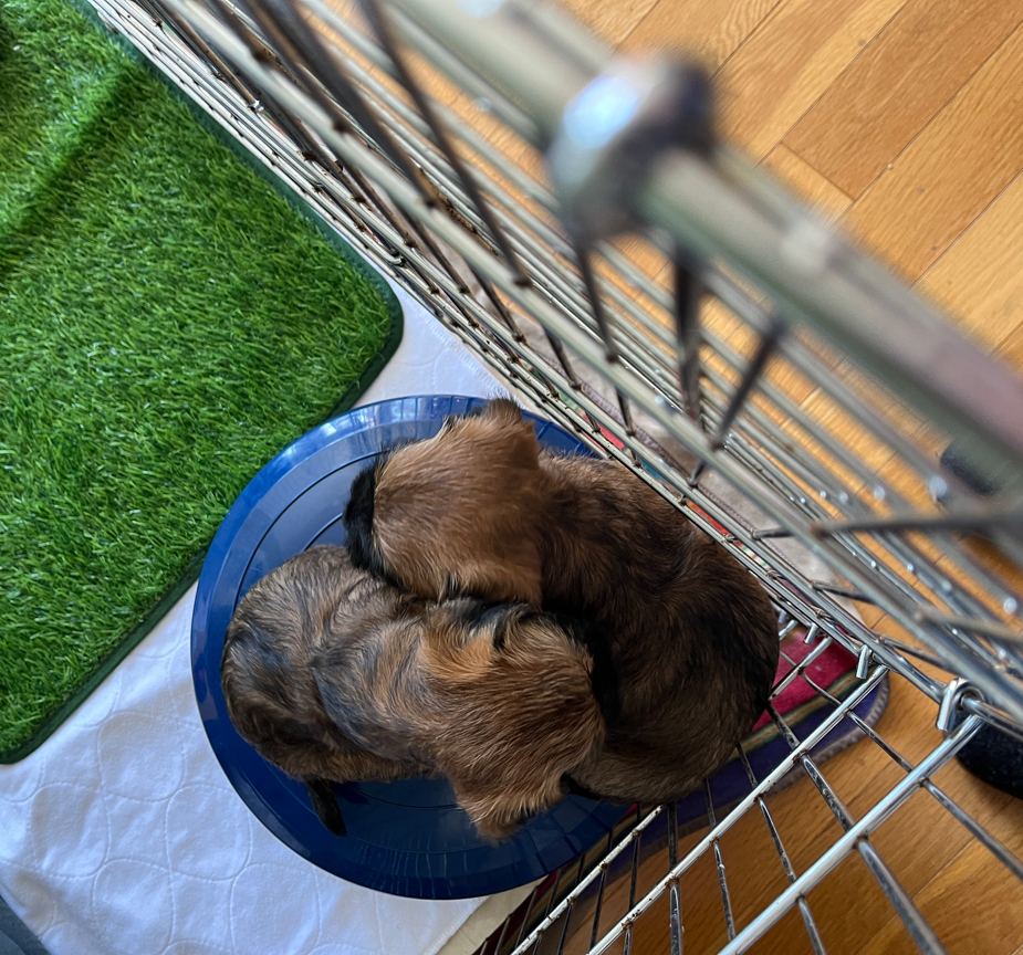 Introduced them to napping in a varikennel in the kitchen pen with the door pushed closed but not latched.