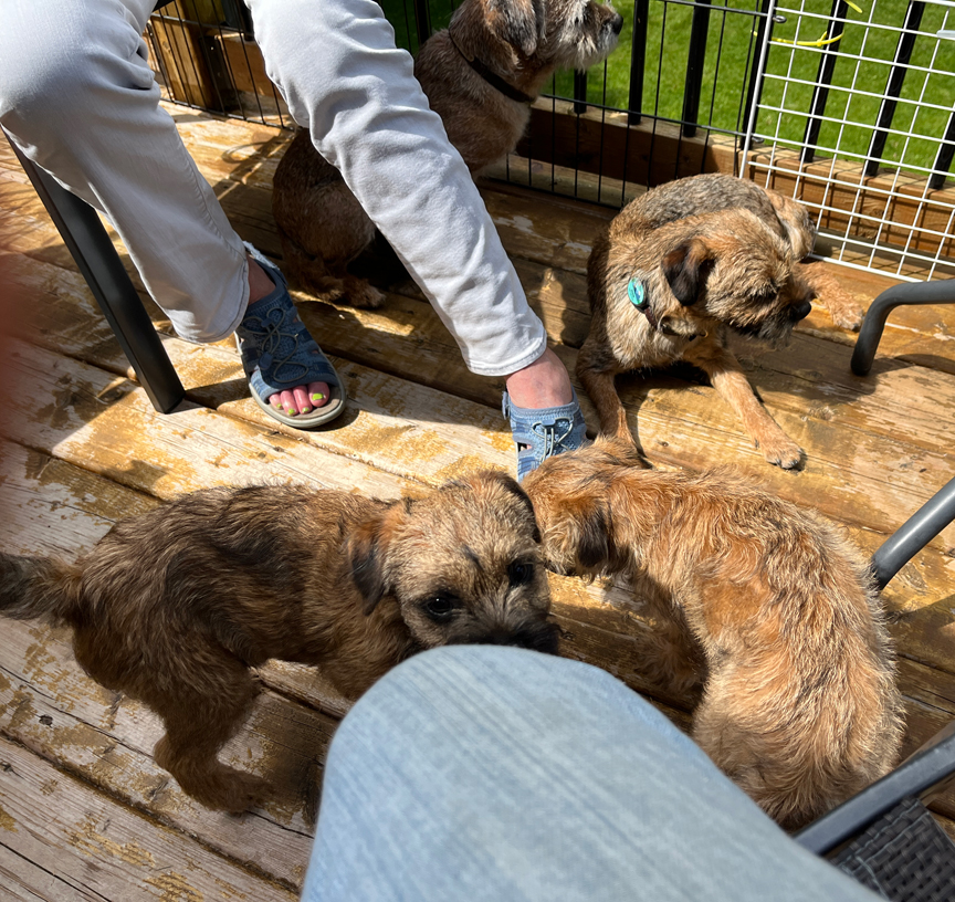 Mid June Debra and Bruce came for a week and the pups had so much fun. Especially Little Gherkin who got to go sight seeing with them.