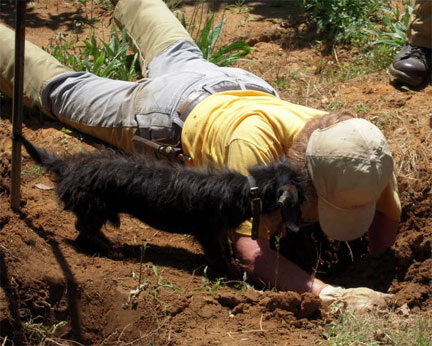 Ping never met a person or dog he didn't like; the same might be said for his woodchucks. We worked with many friends, earthdogs, and lurchers and had some remarkable times. During his 4-1/2 seasons, Ping worked over 100 quarry underground, and we accounted for more than 85 of those. The quarry we missed were due to digging challenges and our inability to support him as he deserved.