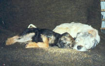 She was the ugly duckling in the litter, a super coat, but a homely head. Still, in April of 1986 Amanda and I went to the Montpelier Rally, and Amanda had the thrill of showing her to Best Puppy and then BOB under Wilf Wriggley. Montpelier became one of her favorite places to visit because she learned that somewhere on the grounds there was a tunnel with RATS! As we would unload the car, her nose would start working. She invented the sport of dis-obedience-GO-TO-GROUND! And over the years the cries of "Here comes Ferret" would echo across the paddock as she left the obedience ring to find the rats!