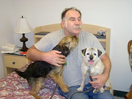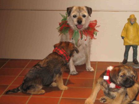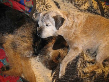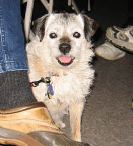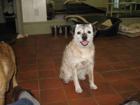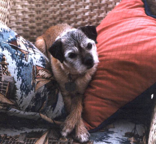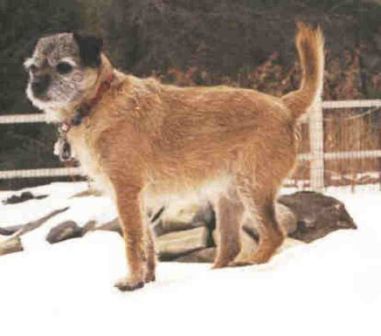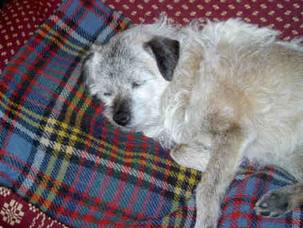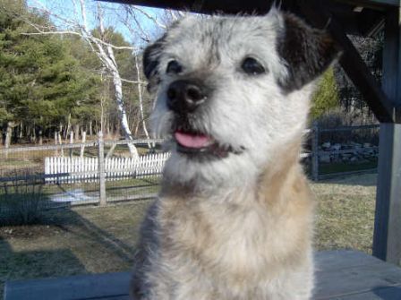 Sadly, my first Border Terrier, 16 year old Harriet (the kennel namesake), went to join her brother James at the Rainbow Bridge on Thursday, November 30th, 2006. She had Inflammatory Bowel Disease which had been under control for over 8 years, and recently had been doing exceptionally well, although she did not like being separated, so she traveled with me wherever I went, eating well and enjoying our time together. When my father was in his last illness in early October, I had to fly to Ohio suddenly and Harriet and all the dogs had to be kenneled. IBD is triggered by stress, and despite lots of TLC, being kept in my friend’s house with my girl Helen to keep her company, and being offered lots of tempting food (people and dog), the stress of being separated was too much for her and she stopped eating.