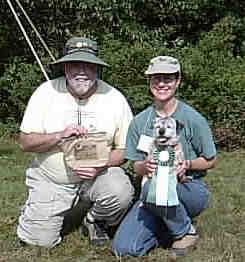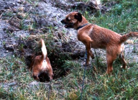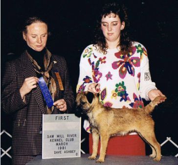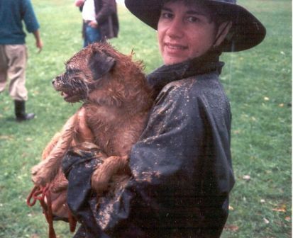 Earthdog – first a CG (Certificate of Gameness) in 1992, then when AKC started Earthdog tests, JE and SE titles in five tries, and ME in seven. At 14 years old, she happily went to ground at the 2004 Border Terrier National Specialty in Gardner, MA. all three days, and was the only one of my five dogs to qualify there.