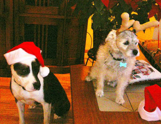 Happy Holidays from "street wise" Parker, "Santa better make this worthwhile" Django and caregiver Philippa